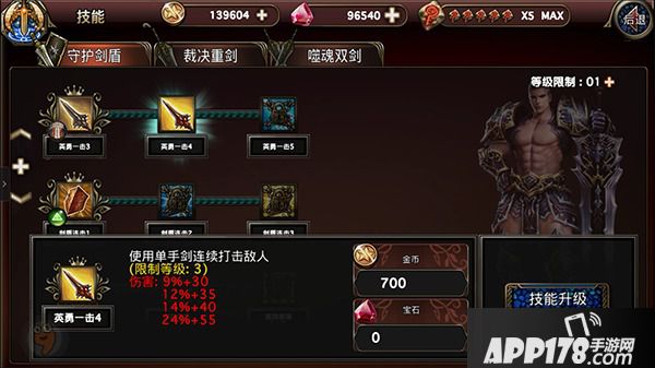 每个角色除了设置3种武器外,每把武器所对应的技能也有所不同,除了要选对武器及技能以外每个技能也都是可以升级增强的,点击右侧技能按钮会弹出技能树,在这个页面玩家可以自由升级技能,但别忘了,技能等级与角色等级是有相关的,所以提升角色等级还是最重要的喔~