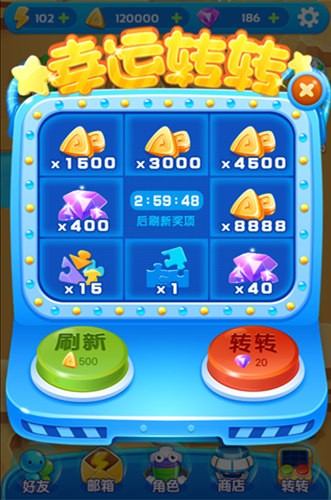 在幸运转转的玩法中,玩家可以通过每日转转来获得转盘中的钻石,如果对当前转盘中的道具不满意可以花费少量的金块来刷新该界面直到满意为止。该方式也是每日必玩的,免费就能够获得,无需任何代价。