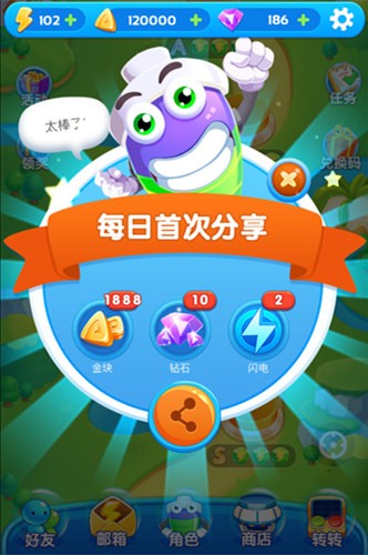 在《电池快跑》中,每日可以登录游戏并进行分享,即可获得金块、钻石以及闪电等道具奖励。虽然并不多,但日积月累再与其他方式配合就可以积少成多。在每日任务中,只要每日进行3次游戏就可以获得钻石,建议大家每天至少要玩3局,而且重新挑战之前的关卡也算符合奖励要求。