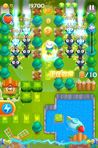 游戏中还会有宝箱,开启的条件是直接顶住宝箱,然后在一段时间的读条后就能够打破宝箱。等开启了宝箱后就会遇到一个闪电形状的道具,该闪电道具可以用来清除怪物。在这一关卡中玩家能够很明显地体验到该道具的巨大效果。