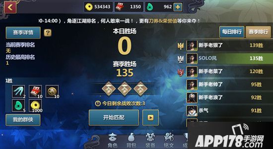 排位赛是一个竞技游戏的核心,刀剑兵器谱手游也不例外,拥有角色天梯和群侠天梯两种排位赛,角色天梯按分数计算,群侠天梯按胜场计算,赛季结束后都会兑换成相应的荣誉币。