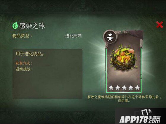 APP178手游网>地牢猎手5>游戏攻略>地牢猎手5自然属性进化材料瘟疫之球图鉴详解