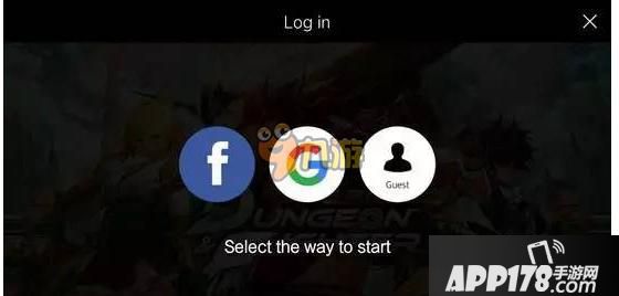 然后会有如何选择创建账号的方式,如下图,分别是FB,Google,以及guest游客登陆。没有前面两种账号的玩家,可以选择最右边游客登陆,即可创建账号。