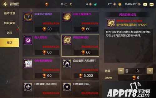商店里面可以购买各种消耗品,比如灵魂、徽章、破魔石等等。但是商店中的商品是有购买限制,比如冒险团等级限制跟数量限制,因此玩家最好是先去提升冒险团等级,这样才能随心所欲的买。