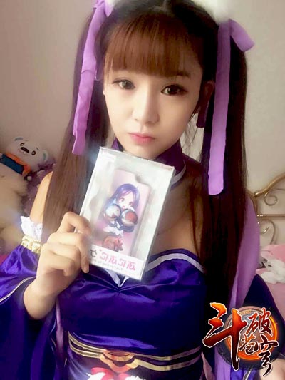 图2:《斗破苍穹》手游九秀女主播展示乳摇手机壳