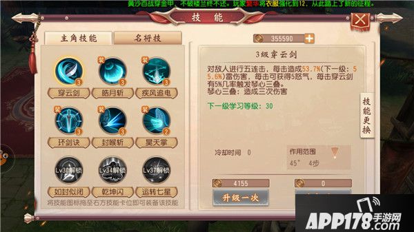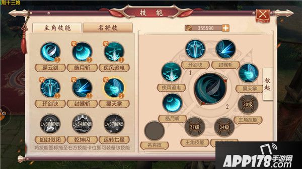玩家们对《大唐无双》的技能系统还是颇有好评的。首先,游戏采用的是最近流行的“双技能栏”(技能轮盘),最多可以容纳8个技能,滑动切换。