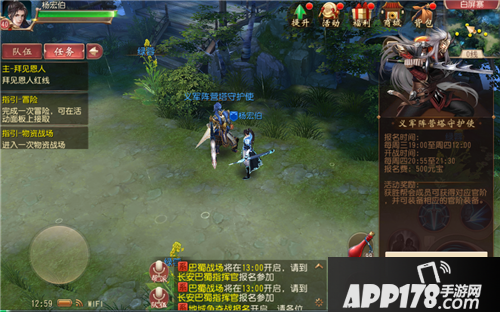 玩家到达40级后可参与阵营塔争夺战。阵营塔争夺战是敌对阵营的帮会PVP玩法,每周三19:00-周四12:00,各帮帮主可在阵营塔守护使处申请报名,每周四晚21:00开战。战场内有泥土、木材、军棉、粮食、铁矿五个资源点,对阵双方将被随机抽取为左军或右军,围绕五个资源点展开资源争夺战。