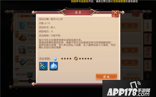 悬赏玩法20级开放,是无双手游中最常用的日常之一,你将根据悬赏官差的指示,前往各地缉拿罪犯。缉拿罪犯后可获得材料玉衡和高级悬赏令。玉衡则是打造所有装备的必备材料之一。而高级悬赏令,则是同其他小伙伴一起缉拿敌对阵营玩家的唯一门票。
