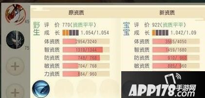 洗宝宝的界面可以选择是否替换当前的资质,这样玩家能保证洗出的资质好于现有的资质的时候才替换。