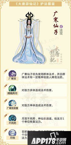 大唐游仙记护法都有什么?广寒仙子厉害吗?下边就让小编来为大家详细的介绍一下游戏中的强力护广寒仙子都有什么样的能力吧!