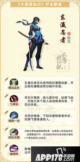 大唐游仙记护法都有什么?东瀛忍者厉害吗?下边就让小编来为大家详细的介绍一下游戏中的强力护法东瀛忍者都有什么样的能力吧!