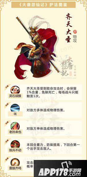 大唐游仙记护法都有什么?美猴王厉害吗?下边就让小编在此为大家来介绍一下游戏中的齐天大圣到底有着什么样的强力技能吧!