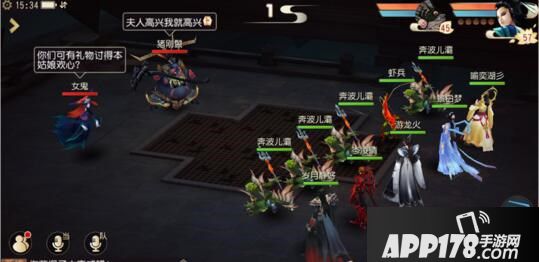 第五关:猪刚鬣第五关在战斗前需要先向旁边的云游商人购买道具胭脂点雪。胭脂点雪价格非常便宜,队长就掏钱买了吧。战斗开始之后,队长每回合对女鬼使用道具,可以大幅度降低女鬼和猪刚鬣的输出,其他人则优先集火击杀猪刚鬣。