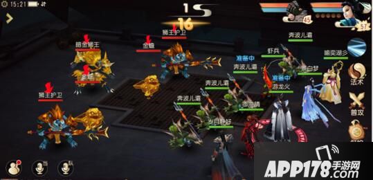 第四关:暗金狮王第四关左边的金蟾门派为舞乐坊,会给主怪解封,右边的金蟾门派为芭蕉洞,会不断使用瘟煌阵封印玩家。两侧的狮王护卫会反弹大量伤害,主怪暗金狮王对于血量少于一半的目标有攻击加成,因此要注意维持好血量。这关可以先击杀右侧的金蟾,在集火击杀主怪。两侧的狮王护卫会反震,建议放在最后击杀,同时普陀不断拉血保持血量。