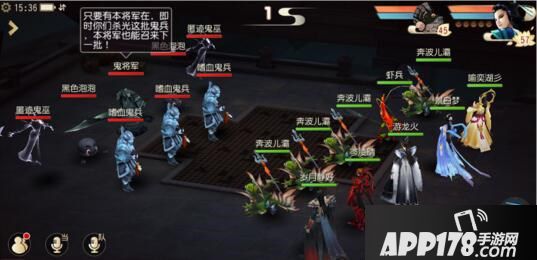 第八关:鬼将军第八关左边和右边的黑色泡泡分别会在第5回合和第9回合对我方造成全体伤害,需要对其封印。不过,黑色泡泡的输出并不高,可以过几个回合之后再封印。两个匿迹鬼巫会持续隐身到第9回合现身,右侧的鬼巫为白骨洞,会不断封印我方,对我方的危险较大,可考虑使用反隐技能或者携带反隐宝宝,对其优先集火点杀。左侧的鬼巫为普陀山,会给主怪加血,也有一定威胁。前排的鬼兵是主要的输出怪物,由于主怪只有在3个鬼兵全部死亡时才会再召唤新的一批鬼兵,因此建议可以击杀两只2鬼兵,保留一只鬼兵不杀,先集火击杀主怪。这关的难度比较大,需要比较合适的门派搭配和操作策略。
