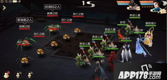 第七关:古墓蜘蛛第七关两只**之咬门派均为白骨洞。右侧的**之咬会使用恶鬼缠身,并优先封印白骨洞。而左侧的**之咬会使用地域开泰,并优先混乱芭蕉洞。这两只蜘蛛对我方的输出和生存威胁很大,可以优先集火击杀。前排的五只死亡之吻技能相同,有一定的概率对玩家造成致命一击,非常强悍。并且,在血量较少时,会隐身并恢复大量血,因此对前排蜘蛛一定要逐个集火击杀。也可适当使用反隐技能或者携带反隐宝宝,对残血的死亡之吻补刀。