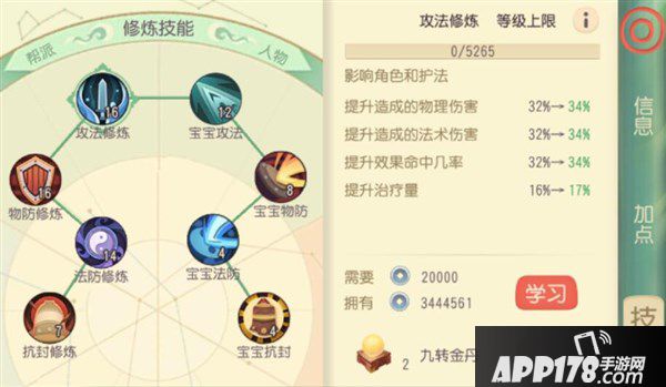 回合制游粉的玩家都知道、修炼是玩家快速提升战斗力的主要途径之一,在游戏中修炼不仅能提升自身的属性加成,还对助战伙伴有加成效果。宠物也有相应的修炼等级、可以提高宠物的战斗力,有的玩家明明等级比别的玩家等级高、但是PK的时候却打不过对方。除了装备带来的影响、修炼等级带来的属性差异是相当大的、看下图修炼等级和属性加成。