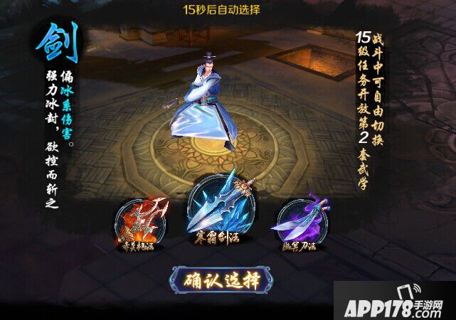 在进入游戏后走完高大上的剧情CG,就能进行第一次武器选择,我们可以从:双刀、长枪、重剑这三种武器中任意选取一种作为自己的第一把武器。