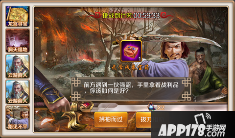 奇遇系统主要有:龙宫寻宝、洞天福地、路见不平、云游商人和魔王来袭五种。龙宫寻宝和洞天福地都需要等待一段时间,然后可以获得银币奖励,选择20黄金的五粮液还可以获得额外的物品奖励哦~
