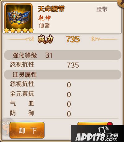 强化等级31级的天命腰带,它的忽视抗性数值为735。
