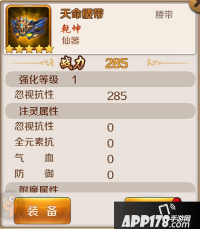 强化等级为1级的天命腰带,忽视抗性为295!