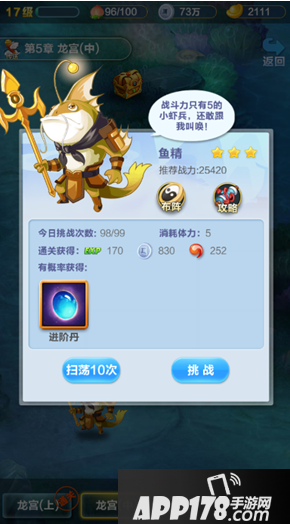 进入游戏后根据指引进行挑战副本任务,挑战副本一次需要消耗5点体力,因为刚开始的副本难度较为轻松很快就可以提升到10级。