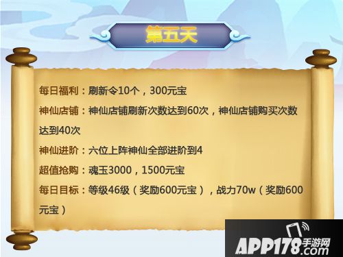记得前几天尽量用免费刷新,这一天把之前攒下来的刷新令尽情地用掉吧,然后刷到自己想要的武将碎片就买买买,所以一定要把半价商品里面的魂玉买了,才能让每次刷新次数都尽量不浪费,刷到想要的武将碎片的时候可以买得起,刷出有需要的碎片时,也可以直接花元宝拿下。魂玉不足的话可以使用请神符到商店中进行百年一遇抽卡,然后分解成魂玉。碰到有需要的神仙碎片的时候也可以选择用元宝购买,魂玉和元宝都计入购买次数。