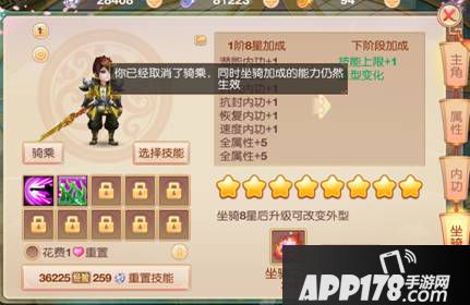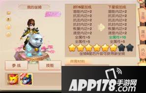 Ps:每当坐骑升阶之后,还可以使用或者观看原先阶数的坐骑,但是原先坐骑技能会全部转移到新升级的坐骑上去,原先坐骑技能不保留