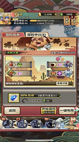 每个探险任务需要的时间都不相同,面对的敌人也丰富多样,在正式开始前大家要认真挑选、优先挑战自己急缺的奖励。除此之外,由于玩家们的式神数量有限,合理分配给不同的探险任务尤为重要。通过不同的式神搭配,玩家们能预览到任务成功率,一般来说90%以上就可以了,可不要突破了100%、浪费式神战斗力哦!