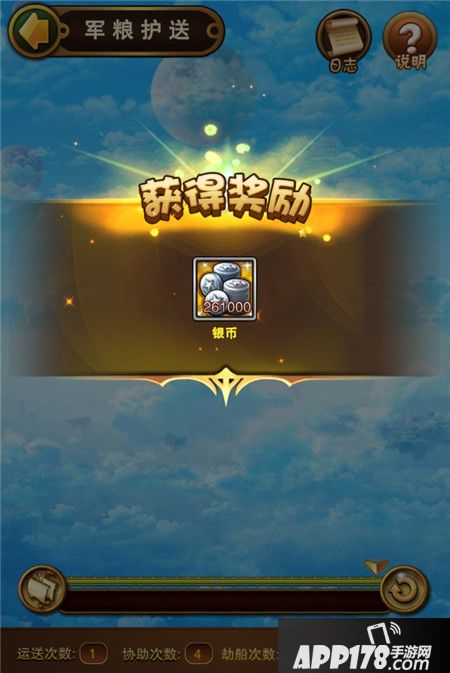 点击右上角的“运送完成”图标,获得本次运送获得的银币奖励。梦梦没被打劫,所以好多钱钱。每天两次机会,大家好好把握。