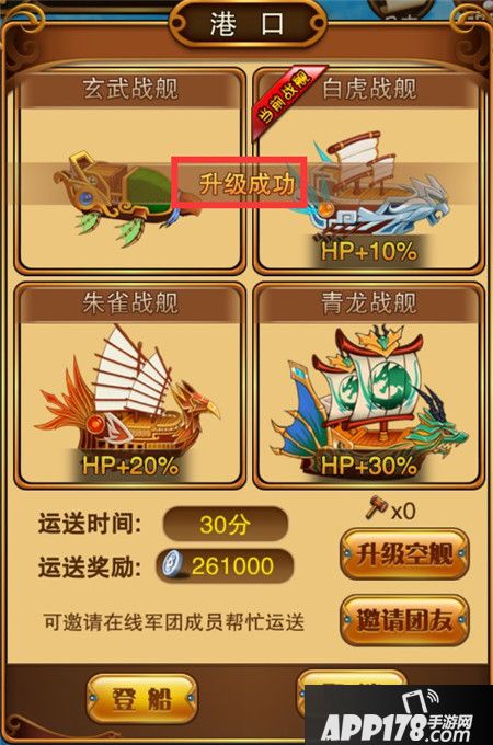 每次运送开始前都有一次免费的升级空舰的机会,梦梦点击后竟然成功了!果断增加了10%的血量。想要再往上升级就要花费钻石了,因为升级是有概率成功的,所以梦梦就没有再升级下去。