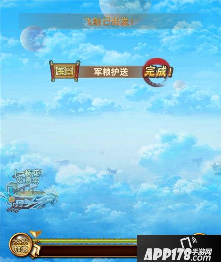 游戏主界面村庄矗立在高高的云端,在村庄最外圈,关卡旁边有一艘小飞艇(看似小船),这其实就是是用来护送军粮的飞艇。开始可能很多主公不太了解如何护送,请继续往下看哦。