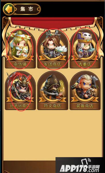 集市内共有6个店铺,其中杂货铺、军团商店、古董店和比武场商店均可产出武将魂石,消耗对应的货币就可直接购买,如果没有您需要的武将魂石,可直接使用刷新功能获取新一轮道具哦。