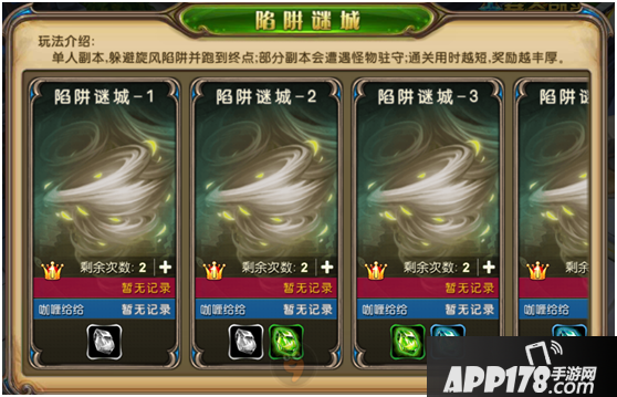 单人副本,躲避旋风陷阱并跑到终点,部分副本会遭遇怪物驻守,通关用时越短,奖励越丰厚