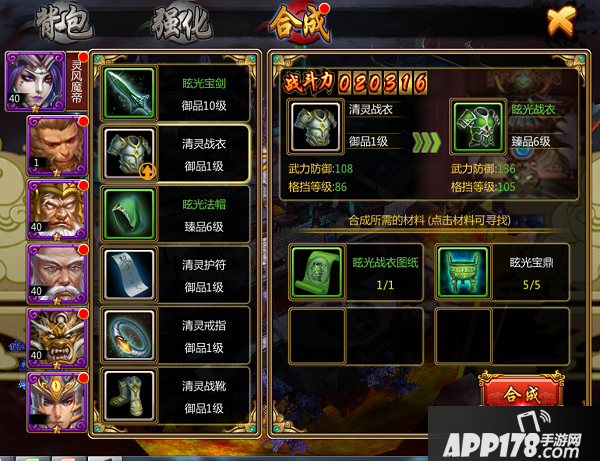 图纸和材料齐全后,只要点击“合成”,即可成功的合成一件装备。合成后的装备比合成之前属性更高,对实力是大幅度的增强哦。