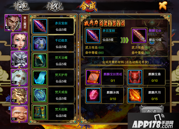 当游戏进程进行到开启试炼场后,就可以进行【装备合成】了。装备合成后属性将会大幅度成长。