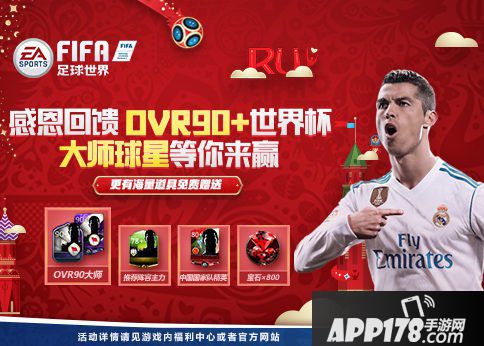 不知不觉间《FIFA足球世界》已经陪伴了您一个多月的时间,为了感谢您这段时间的陪伴以及支持,运营团队再次为您带来了精彩的活动,您不但可以从中获得海量道具,更可以获得OVR90+的世界杯我的国家队大师球星!