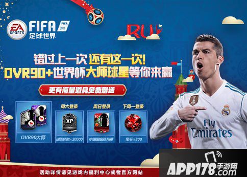 终极庆典豪礼:领取庆典豪礼赢OVR90+世界杯大师球星卡!在活动期间完成以下活动:7月7日 - 7月9日连续登录游戏;7月7日 - 7月9日参与任意一场进攻对战或实时对战;7月7日 - 7月9日您所在的公会进行至少一场公会对战;即可获得一名OVR90+的世界杯我的国家队大师球星卡!奖励将在下周二下午到晚间(7月10日)发放到您游戏内的收件箱中,请注意查收。