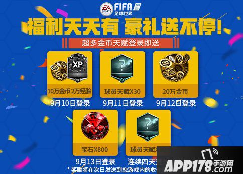 5、9月10日至9月13日连续4天登录《FIFA足球世界》