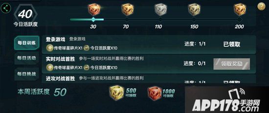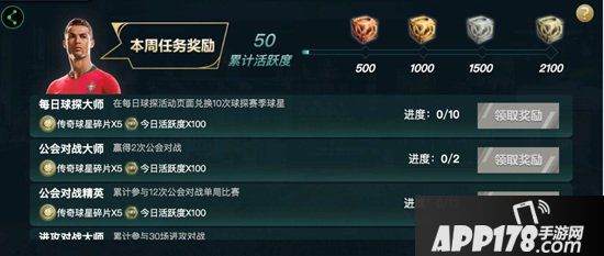 在这个章节,通过完成每日刷新的任务,玩家可以获得当日的活动活跃度,以及传奇球星碎片。