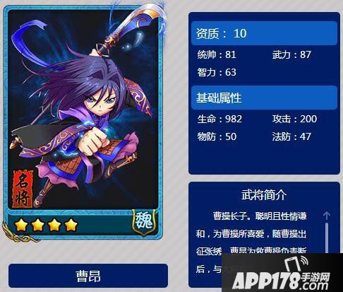 以上就是放开那三国曹昂属性图鉴的全部内容,希望能给喜欢曹昂的小伙伴们带来帮助。更多 相关攻略稍后送上~请继续关注APP178手游网~更多精彩期待你的分享~