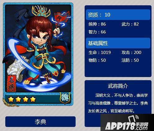 以上就是放开那三国李典属性图鉴的全部内容,希望能给喜欢李典的小伙伴们带来帮助。更多 相关攻略稍后送上~请继续关注APP178手游网~更多精彩期待你的分享~