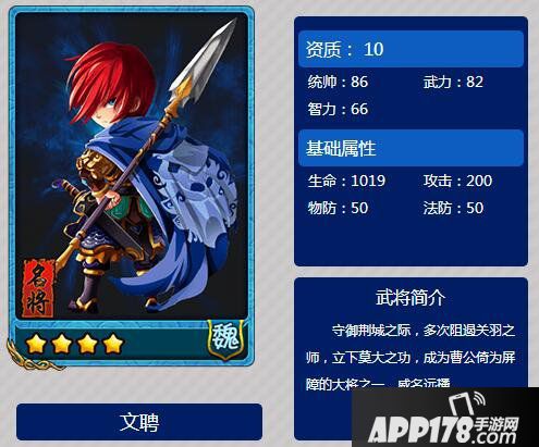 以上就是放开那三国文聘属性图鉴的全部内容,希望能给喜欢文聘的小伙伴们带来帮助。更多 相关攻略稍后送上~请继续关注APP178手游网~更多精彩期待你的分享~
