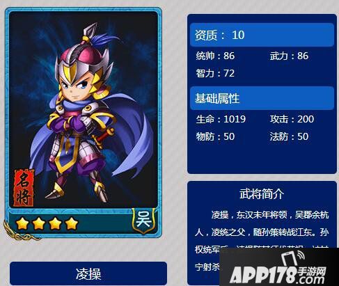 以上就是放开那三国凌操属性图鉴的全部内容,希望能给喜欢凌操的小伙伴们带来帮助。更多 相关攻略稍后送上~请继续关注APP178手游网~更多精彩期待你的分享~