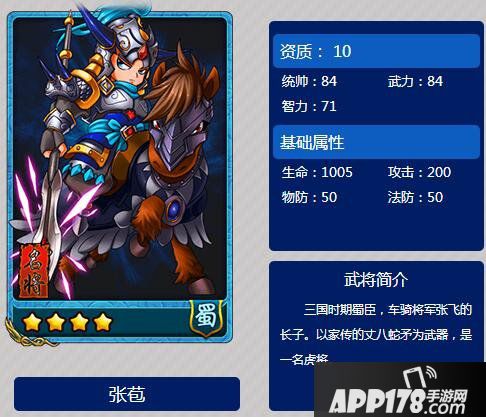 以上就是放开那三国张苞属性图鉴的全部内容,希望能给喜欢张苞的小伙伴们带来帮助。更多 相关攻略稍后送上~请继续关注APP178手游网~更多精彩期待你的分享~