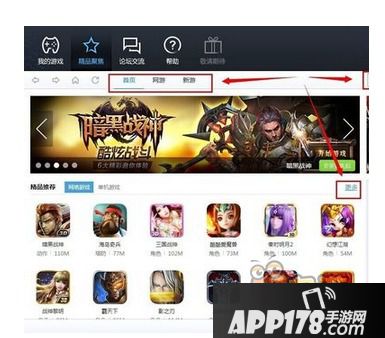 第三步,在精品聚焦页面可以搜索、查看更多游戏,收录了最新网游和新游,这里我们输入问道手游搜索这款游戏。