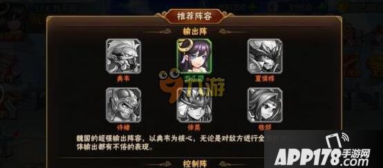 魏国的超强输出阵容,以典韦为核心,无论是对敌方进行全面打击还是单体输出都有不俗的表现。