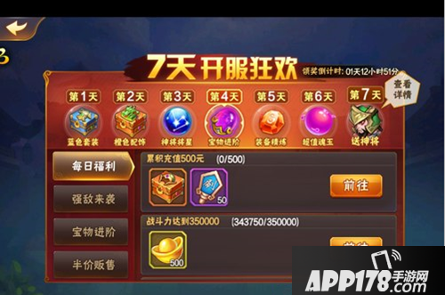 开号准备:首先鉴于在第七天得达到55级,118万的战力的高要求,所以建议大家能够充个V4或者V5,当然也可以不充,只是这样就比较难以完成这个要求。达到了V4或者V5就能买到更多的体力丹,等级自然也就容易提升。而在这七日活动中,最重要的一点就是得将所有的半价商品买全了!第1天任务比较基础,基本到了第7天所有要求都能达到。