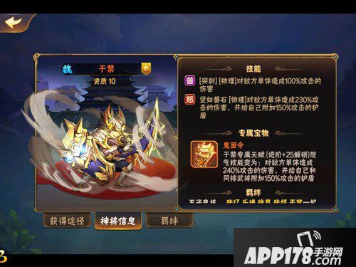 缺点:于禁和孟获相比,于禁的羁绊更注重于攻击,在防御和生命羁绊上较弱,且要自己回复生命几率较低。