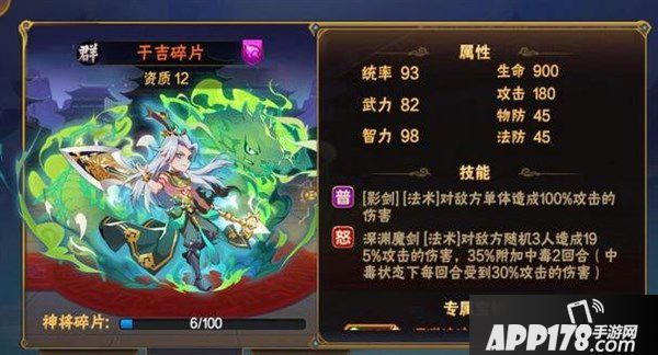 于吉本身是一个比较越血少的武将,很容易被对方轻易的秒掉,其主要是以毒伤为主,那么我们放在毒伤队伍中拥有较强的效果,但是适合放于后手,这样能有效的避免掉掉血,但是这个武将在前期想要获取并不是很容易,而且吃资源比较的厉害,建议大家在后期或者高v使用!